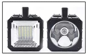 Двойная конструкция фонаря обеспечивает как широкий угол освещения, так и мощный направленный луч!